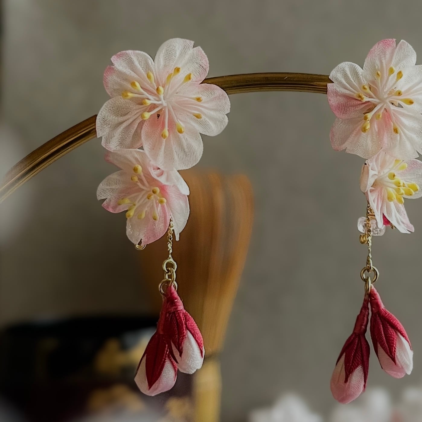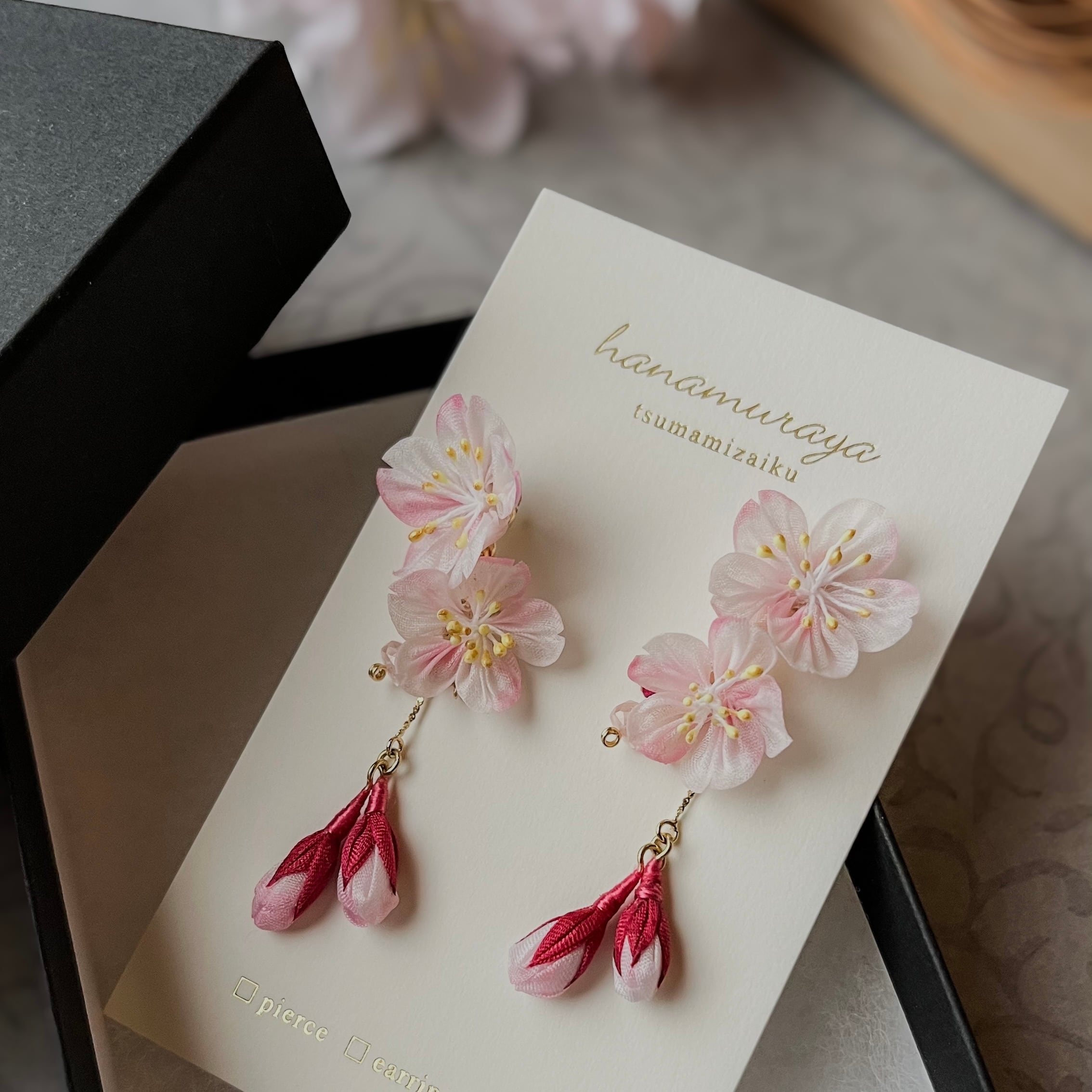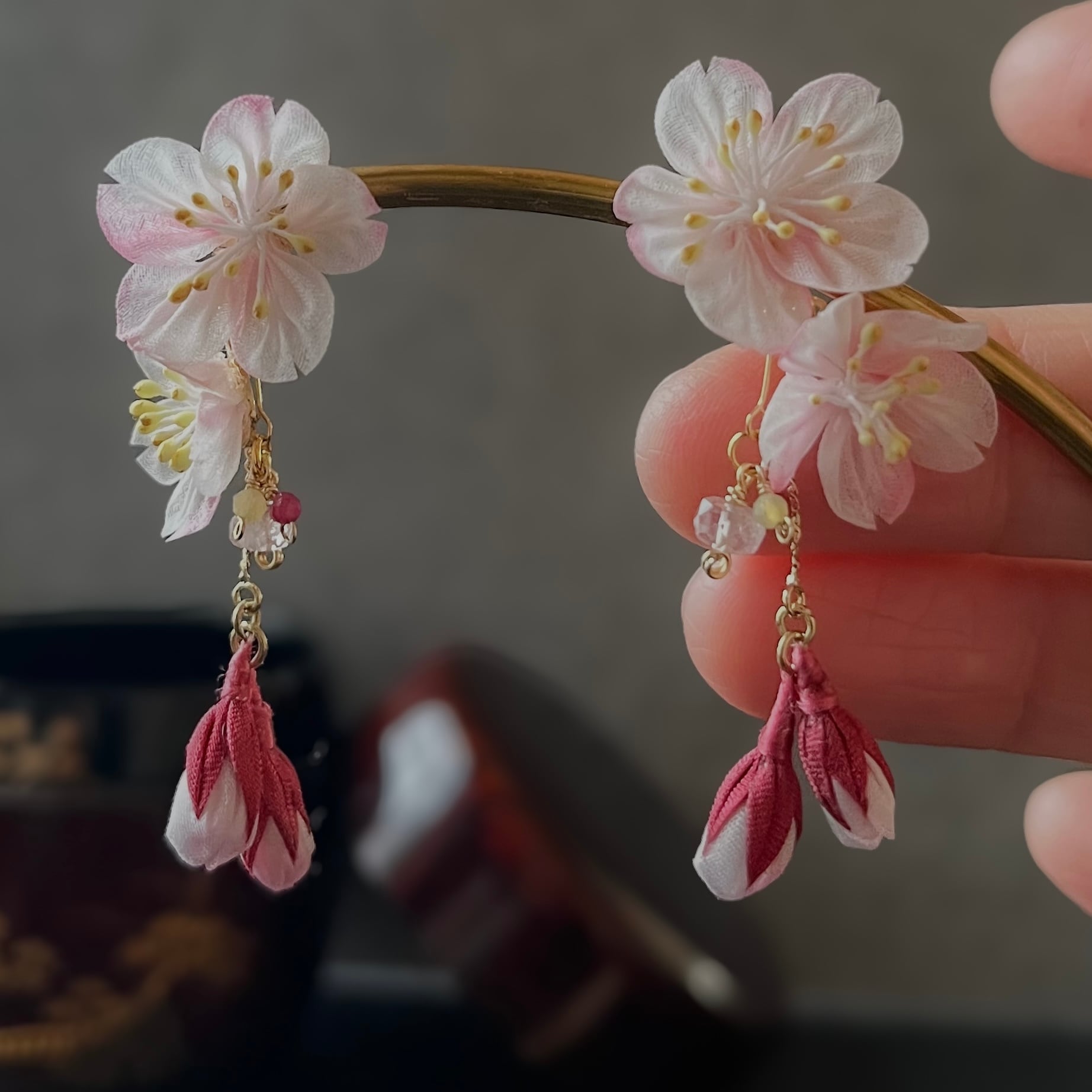 • 一点もの:淡い桜色の花びらにお化粧するようにランダムに紅色をほどこした色彩のゆらぎは、あなたを丸ごと肯定するお守りの証です。