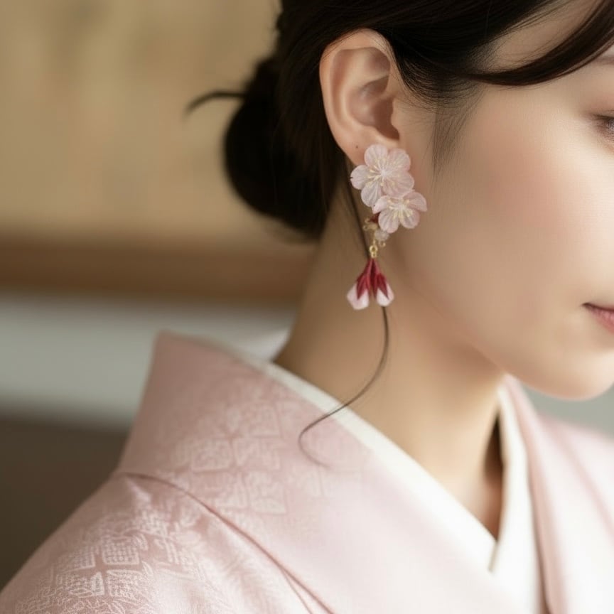 そこに一歩踏み出す勇気をくれる「蕾紅梅(つぼみこうばい)」を重ねることで、自立した女性の余裕と、揺るぎない芯のある品格を演出します。