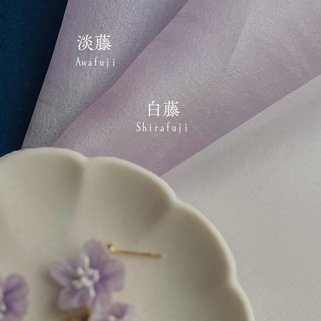 • 色彩:淡い藤色の桜の他に、白い桜に筆で紫色をのせて表情を出しました。