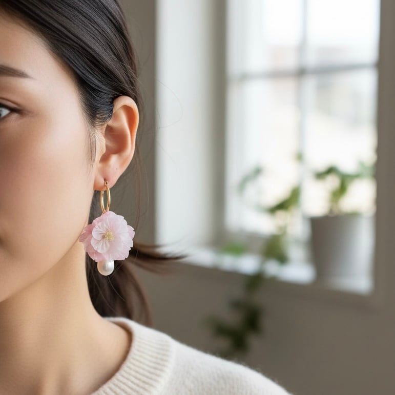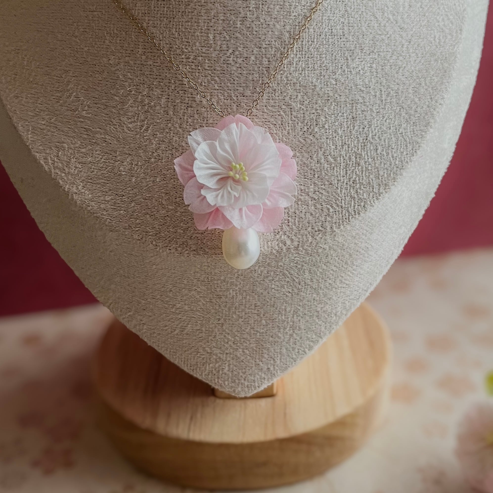 • 淡水パール(約1cm×0.8cm)は取り外し可能で、八重桜だけ、パールだけ、あるいは手持ちのネックレスに付け替えたりと、その日の気分に寄り添います。