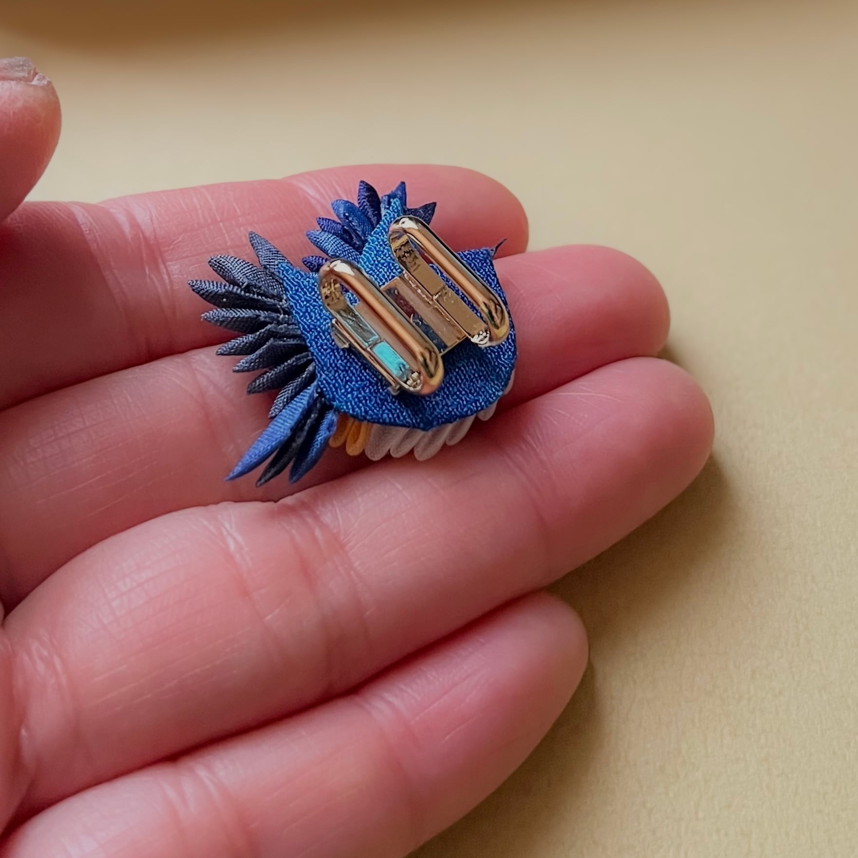 ブローチ・帯留用として、耳飾りよりも一回り大きなサイズで仕立てました。