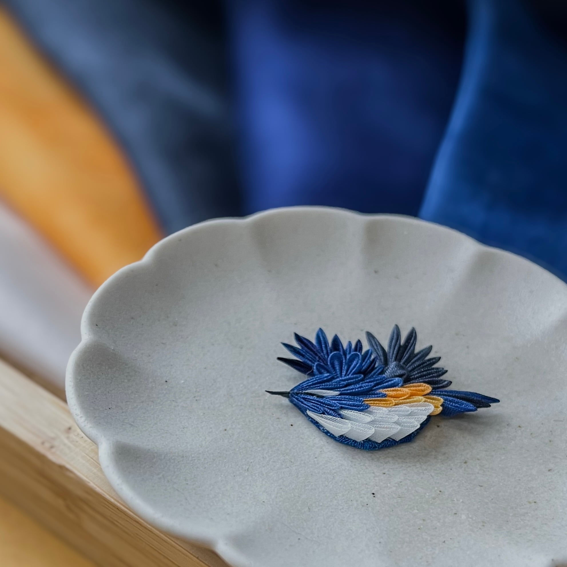 瑠璃色、金青色、紺鼠色の重なりや、お腹の繊細な「ぼかし染め」など、細やかな手仕事の細部までより深くお楽しみいただけます。